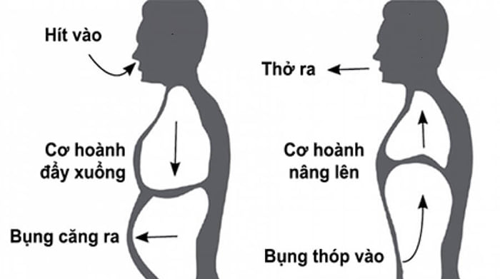 – Bước 5: Thở ra từ từ, thở chậm qua miệng với thời gian thở ra gấp đôi thời gian hít vào và bàn tay trên bụng có cảm giác lõm xuống.