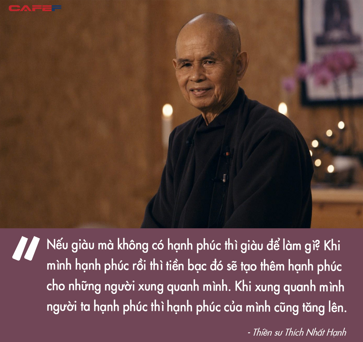 Thiền sư Thích Nhất Hạnh cho rằng làm giàu không phải chuyện xấu, nhưng phải biết mình muốn giàu vì mình muốn hạnh phúc.